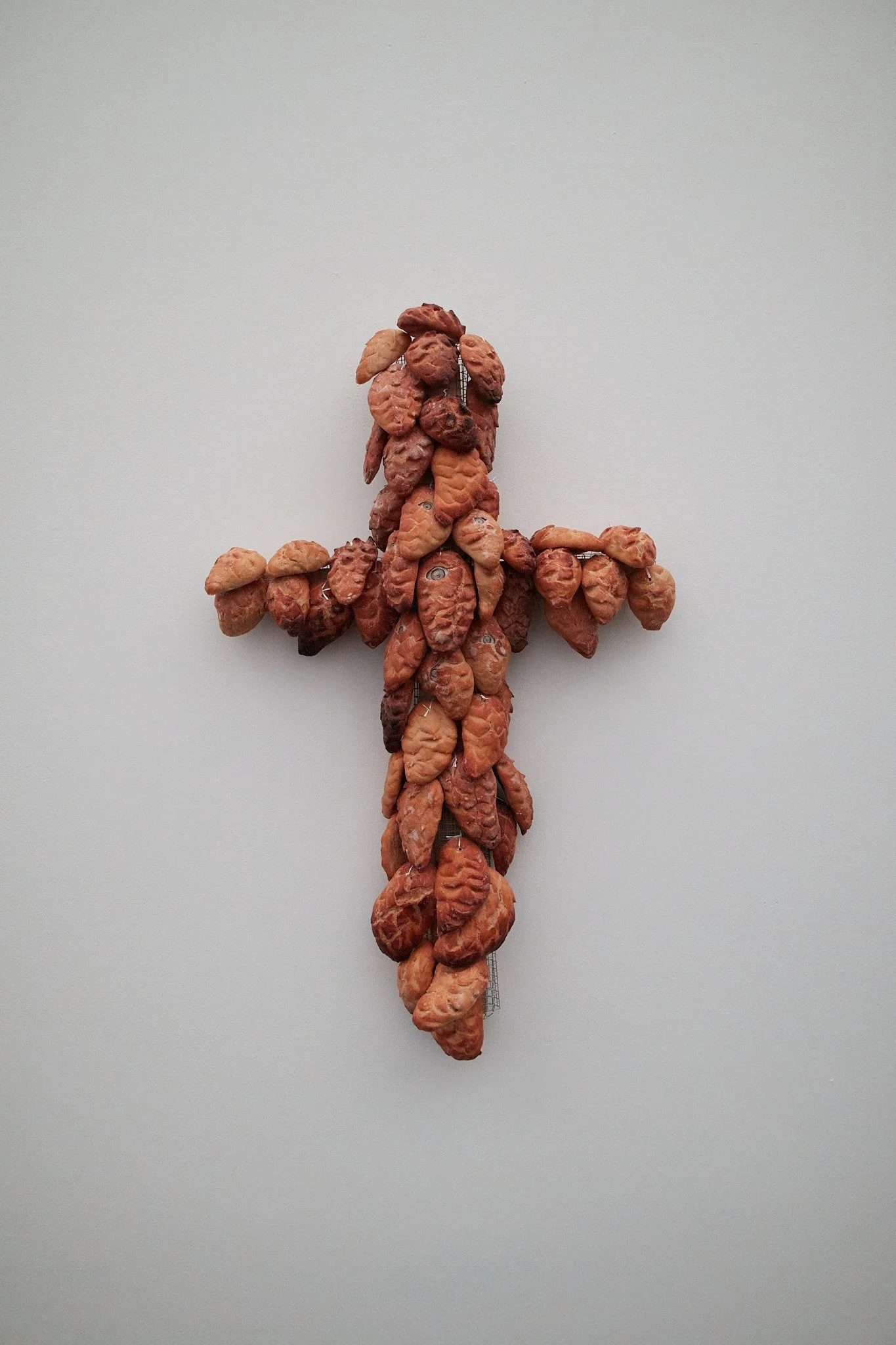 Biblical aesthetics thread through the space with a curious restraint. Bread recurs in sculptures by Moyu Yang and Zhen Zhen, humble, sacramental, a substance at once quotidian and charged. In Christian iconography it is both nourishment and body. Here, it appears without piety. It is pressed into artworks that feel devotional without sermonising. The sacred lingers as residue. One senses the afterimage of scripture, photocopied too many times, its authority softened into texture.